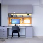 The study corner near the window was designed to receive ample natural light. This makes it a perfect spot for reading, studying, or quiet creative time. Open shelving keeps essentials accessible. Closed storage ensures the room stays uncluttered. The desk’s minimal lines and soft grey framing subtly tie into the rest of the cabinetry.